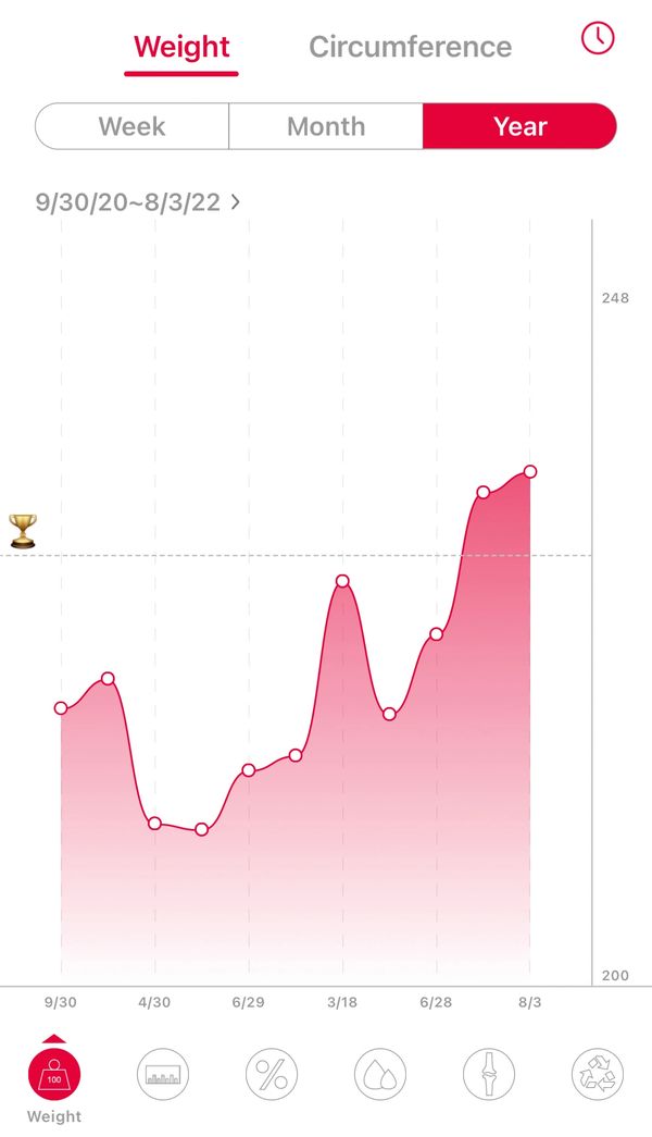 Measuring and Tracking specific areas of the body to track progress is one way to follow progress. With this feature all measurements get stored on your phone and progress can be checked at any time.